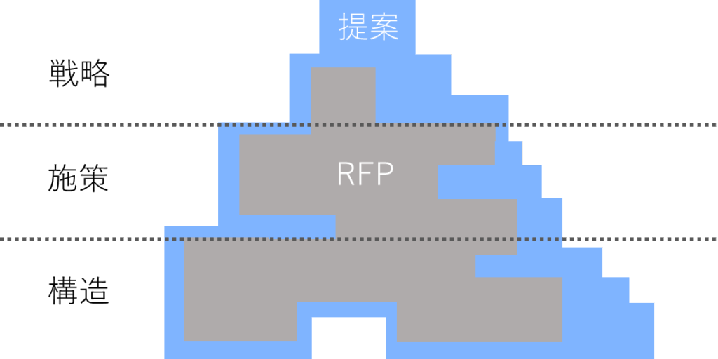 仮説は常に正しいとは限りませんが、顧客にとって重要な論点を見極めるための出発点となり、議論を通して、当初のRFPを超えて顧客の期待する提案範囲が拡大します。