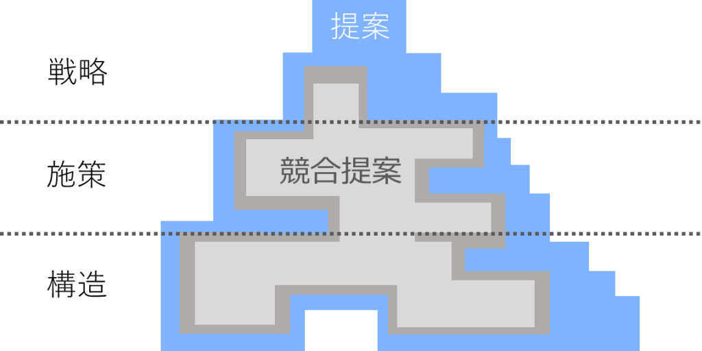 コンサルティングファームは営業活動を通して仮説を深掘りし、顧客の期待を意図的に広げているため、競合の提案範囲では、顧客の期待を十分に満たせません。